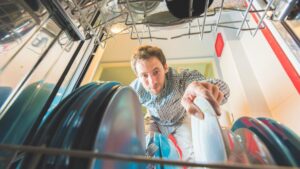 Still, you can rest easy knowing that a full dishwasher load uses less water than hand-washing an equivalent amount of dishes in the sink. Remember to do a full load as often as you can since dishwashers’ efficiency benefits diminish as load sizes go down.