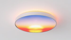 The 21-inch disk-shaped overhead light is filled with over 600 ultradense LEDs, featuring a screen-grade matrix layout, allowing you to do some very cool things with this light. The launch video shows an artist taking a photo of their painting of the Mona Lisa and then sending it directly to the light for display. It’s not digital picture frame quality, but you get the idea.