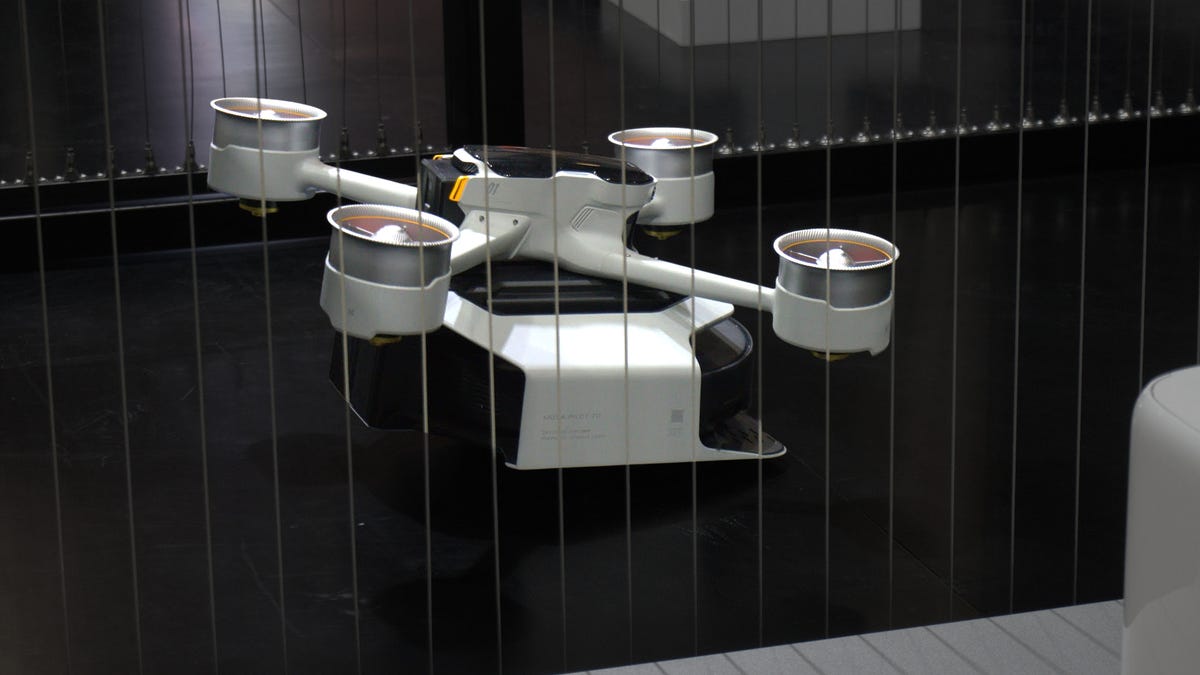 For the demo, everything is contained in a fairly small metal box, since Mova and the CES organizers want the Pilot 70 crashing somewhere on the crowded show floor. I watched the drone take off and hover in the air for maybe 30 seconds to a minute, before landing again. I expected it to land on the black platform pictured in the photo above, but for some reason, it didn’t. My contact at Mova said the landing was working in previous demos, but there may have been a technical issue this time.
