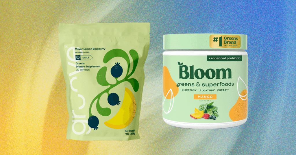 Bloom Nutrition Superfood Greens Powder Compact packaging. Many different flavors. Wide availability. Very sweet. Calories: 20. Carbohydrates: 4 g. Dietary fiber: 2 g. Iron: 0.5 mg. Sodium: 8 mg. Fiber blend: 1.606 g. Green Superfood Blend: 1.367 g. Pre and Probiotic Blend: 648 mg. Fruit and Vegetable Blend: 572 mg. Antioxidant Beauty Blend: 550 mg. Digestive Enzyme Blend: 150 mg. Adaptogenic Blend: 100 mg. (May vary slightly by flavor.) 10 30+ $1.33 Yes Plant based. Dairy free. Gluten free. Groove Greens Powder Delicious. Doesn’t taste like greens. Scoop is messy. Doesn’t taste like greens. Calories: 20. Carbohydrates: 5 g. Dietary Fiber: 2 g. Vitamin C: 90 mg. Vitamin D: 20 mcg. Vitamin B12: 10 mcg. Calcium: 30 mg. Iron: 1.6 mg. Sodium: 50 mg. Potassium: 110 mg. 3 21 $2 Yes No dyes, no artificial flavors, no artificial sweeteners. Live It Up Super Greens Neutral flavor. Vague instructions may not be ideal for some people. Calories: 30. Carbohydrates: 3 g. Dietary Fiber: 3 g. Protein: 2 g. Vitamin A: 135 mcg RAE. Vitamin K: 84 mcg. Thiamin: 0.05 mcg. Riboflavin: 0.078 mg. Niacin: 0.39 mg NE. Vitamin B6: 0.04 mg. Folate: 40 mcg DFE. Vitamin B12: 3.84 mcg. Calcium: 49 mg. Iron: 3.6 mg. Phosphorous: 25.76 mg. Iodine: 52.5 mcg. Magnesium: 17 mg. Selenium: 41.5 mcg. Copper: 0.04 mg. Manganese: 0.45 mg. Chromium: 28 mcg. Molybdenum: 3.6 mcg. Chloride: 46 mg. Sodium: 22 mg. 2 28 $1.33 Yes Sugar free. Gluten free. Dairy free. Vegan. No preservatives, GMOs, artificial flavors, stevia, artificial sweeteners, or caffeine. Athletic Greens AG1 Tastes healthy in a good way. Upscale packaging. NSF Certified for Sport. High price tag may not be ideal for some. Calories: 40. Carbohydrates: 6 g. Dietary Fiber: 2 g. Protein: 2 g. Vitamin A: 550 mcg RAE. Vitamin C: 500 mg. Vitamin E: 20 mg. Thiamin: 3 mg. Riboflavin: 2 mg. Niacin: 16 mg NE. Vitamin B6: 5 mg. Folate: 680 mcg DFE. Vitamin B12: 400 mcg. Biotin: 330 mcg. Pantothenic acid: 4 mg. Choline: 25 mg. Calcium: 120 mg. Iron: 1 mg. Phosphorous: 130 mg. Magnesium: 30 mg. Zinc: 20 mg. Selenium: 22 mcg. Copper: 0.2 mg. Manganese: 0.4 mg. Chromium: 25 mcg. Molybdenum: 45 mcg. Sodium: 35 mg. Potassium: 250 mg. Vitamin K2: 90 mcg. Benfotiamine: 25 mg. Myo-Inositol: 100 mg. Boron: 500 mcg. Coenzyme Q10: 60 mg. Alpha-lipoic acid: 100 mg. 5 83 $3.30 Yes Vegetarian. Vegan. Paleo. Keto. Halal. Free from GMOs, artificial sweeteners, gluten, dairy, lactose, eggs, and peanuts. Athletic Greens AG1 Flavors Healthy-tasting (in a good way). Upscale packaging. NSF Certified for Sport. High price tag may not be ideal for some. Calories: 40. Carbohydrates: 6 g. Dietary Fiber: 2 g. Protein: 2 g. Vitamin A: 550 mcg RAE. Vitamin C: 500 mg. Vitamin E: 20 mg. Thiamin: 3 mg. Riboflavin: 2 mg. Niacin: 16 mg NE. Vitamin B6: 5 mg. Folate: 680 mcg DFE. Vitamin B12: 400 mcg. Biotin: 330 mcg. Pantothenic acid: 4 mg. Choline: 25 mg. Calcium: 120 mg. Iron: 1 mg. Phosphorous: 130 mg. Magnesium: 30 mg. Zinc: 20 mg. Selenium: 22 mcg. Copper: 0.2 mg. Manganese: 0.4 mg. Chromium: 25 mcg. Molybdenum: 45 mcg. Sodium: 35 mg. Potassium: 250 mg. Vitamin K2: 90 mcg. Benfotiamine: 25 mg. Myo-Inositol: 100 mg. Boron: 500 mcg. Coenzyme Q10: 60 mg. Alpha-lipoic acid: 100 mg. 5 83 $3.30 Yes Vegetarian. Vegan. Paleo. Keto. Halal. Free from GMOs, artificial sweeteners, gluten, dairy, lactose, eggs, and peanuts. Primal Harvest Super Greens Powder Neutral flavor. Slow to dissolve. Calories: 35. Fat: 0.6 g. Carbohydrates: 6 g. Dietary Fiber: 2.5 g. Protein: 1.4 g. Vitamin C: 110 mg. Vitamin E: 10 mg. Vitamin B12: 25 mcg. Zinc: 7.5 mcg. Copper: 0.06 mg. 1 54 $1.66 Yes No added gluten, dairy, soy, or sugars. No eggs, gluten, or gelatin. Organifi Green Juice Powder Minty flavor is good (if a little weird). Pouch is hard to close. Calories: 30. Carbohydrates: 6 g. Dietary Fiber: 3 g. Protein: 1 g. Calcium: 31 mg. Iron: 2 mg. Sodium: 15 mg. 2 11 $2.66 Yes Gluten free. Vegan. Soy free. Dairy free. Plant based. Organic. Non-GMO. LTH Nourish Daily Multi Plus Greens Balanced, intense flavor. Unpleasant appearance. Requires 12 ounces of liquid. Calories: 30. Carbohydrates: 5 g. Dietary Fiber: 1 g. Protein: 2 g. Vitamin A: 750 mcg. Vitamin C: 750200mcg. Vitamin D: 50 mcg. Vitamin E: 20 mg. Thiamin: 2 mg. Riboflavin: 2 mg. Niacin: 15 mg. Vitamin B6: 2 mg. Folate: 400 mcg DFE. Vitamin B12: 5 mcg. Biotin: 320 mcg. Pantothenic Acid: 5 mg. Calcium: 80 mg. Iron: 2 mg. Iodine: 150 mcg. Magnesium: 80 mg. Zinc: 15 mg. Selenium: 60 mcg. Copper: 1.5 mg. Manganese: 0.5 mg. Chromium: 200 mcg. Molybdenum: 45 mcg. Sodium: 35 mg. Potassium: 300 mg. 1 34+ $2.66 Yes No artificial colors, flavors, or sweeteners. Zena Nutrition Greens Organic Supergreens Fruits & Vegetables High fiber content. Grassy flavor. Calories: 20. Carbohydrates: 4 g. Dietary fiber: 3 g. Protein: 2 g. Calcium: 36 mg. Iron: 1 mg. Sodium: 6 mg. Potassium: 143 mg. 4 70+ 113 Yes Vegetarian. Gluten free. Dairy free. Soy free. Non-GMO. BrickHouse Nutrition Field of Greens Several options to choose from. Pleasant taste. Chalky texture. Calories: 25. Sodium: 15 mg. Carbohydrates: 4 g. Dietary fiber: 2 g. Protein: 1 g. Vitamin D: 4 mcg. Calcium: 1 mg. Vitamin A: 233 mcg. Vitamin C: 19 mg. Vitamin E: 3 mg. Vitamin K: 26 mcg. Thiamin: 0.3 mg. Riboflavin: 0.3 mg. Niacin: 3 mg. Vitamin B6: 0.4 mg. Folate: 86 mcg DFE. Vitamin B12: 0.5 mcg. Biotin: 6 mcg. Pantothenic Acid: 1 mg. Iodine: 3 mcg. Magnesium: 9 mg. Selenium: 1.2 mcg. Chromium: 1 mcg. Molybdenum: 1 mcg. 7 38+ $3 Yes Gluten free. Lactose free. Natural flavors. Sips Club Veggie Sips Very tasty. Stick format. Inclusion of prunes may be a blessing or a curse. Calories: 5. Carbohydrates: 3 g. Dietary fiber: 2 g. 4 21 $1.83 Yes Gluten free. No added sugars. No artificial dyes. WelleCo The Super Elixir Some flavors are great. Compact packaging. Some flavors are off-putting. Slow to dissolve. Vitamin A: 5 mcg. Calcium: 30 mg. Biotin: 65 mcg. Magnesium: 7 mg. Zinc: 5 mg. Selenium: 5 mcg. Copper: 0.76 mg. (WelleCo says there